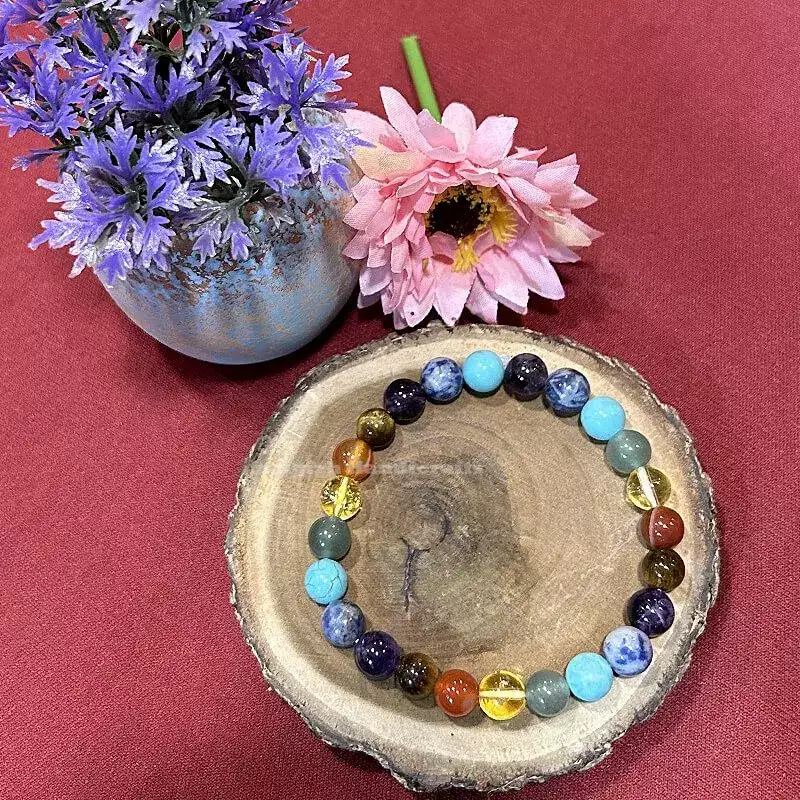 Marvel at the vibrant and harmonious blend of colors, each resonating with a specific chakra. This isn't just a bracelet; it's a wearable piece of India's cultural richness, echoing the lively hues of Rajasthan's festivals or the tranquility of Kerala's backwaters