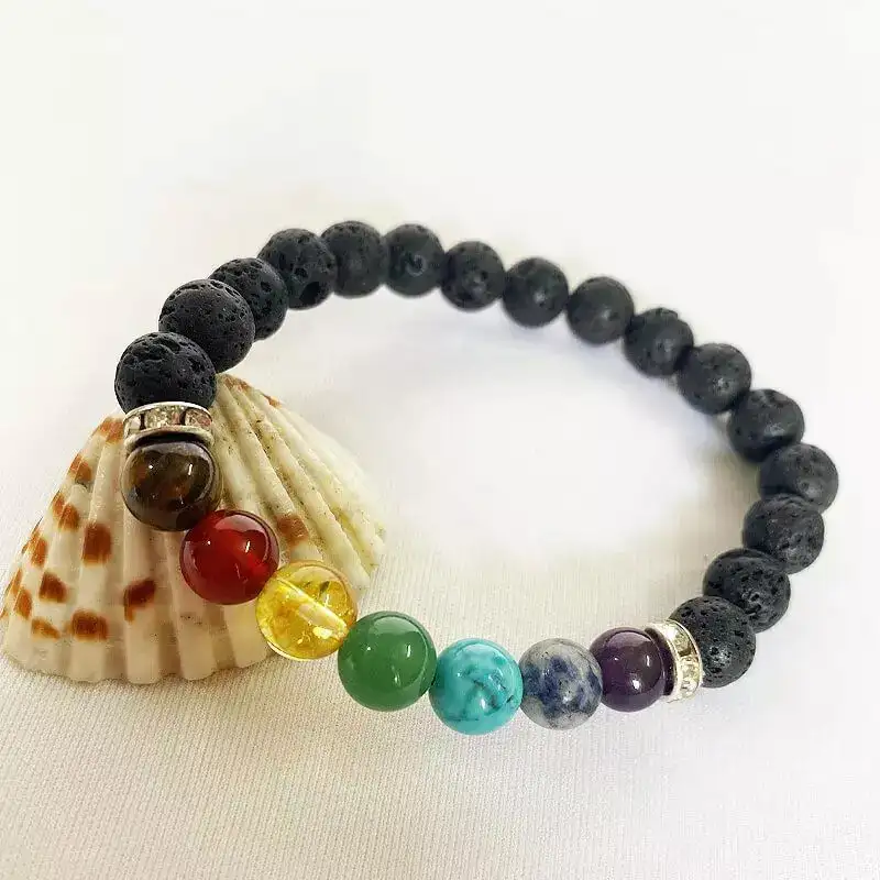 CLICK HERE to buy our 8mm 7 Chakra Lava Crystal Stone Bracelet Natural Finish